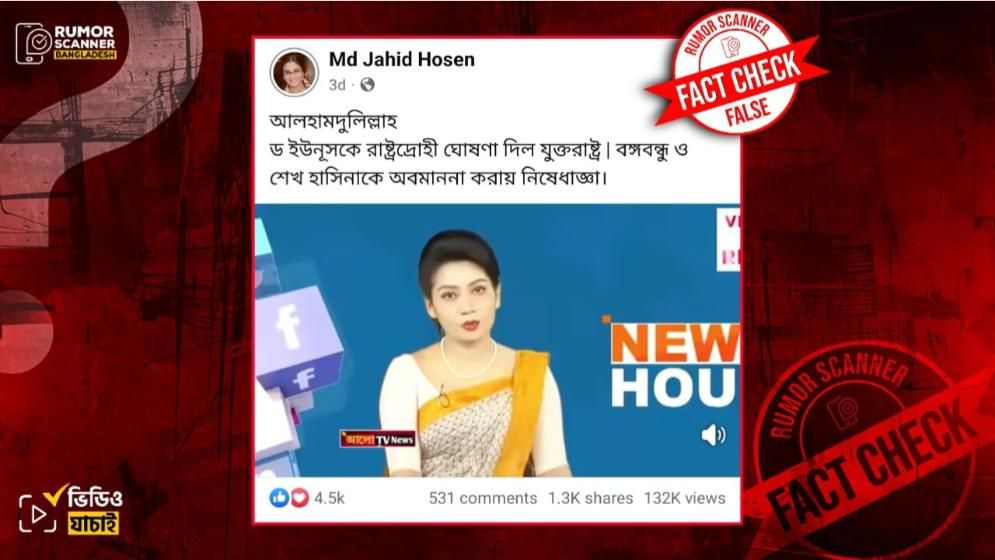 যুক্তরাষ্ট্র ড. ইউনূসকে রাষ্ট্রদ্রোহী ঘোষণা দিয়ে নিষেধাজ্ঞা দিয়েছে শীর্ষক দাবিটি মিথ্যা