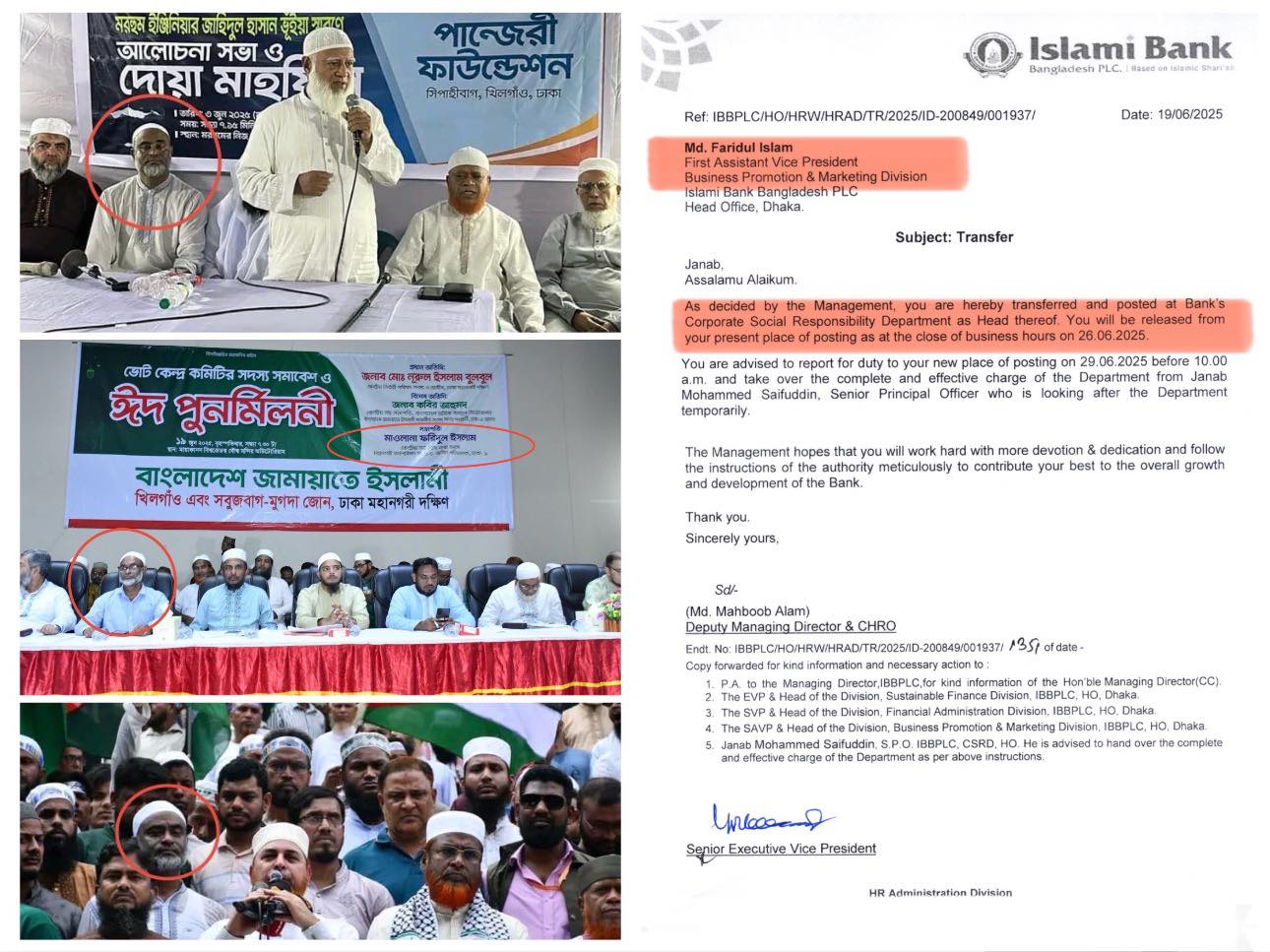 ইসলামী ব্যাংকের সিএসআর প্রধানের সক্রিয় রাজনৈতিক সম্পৃক্ততা নিয়ে প্রশ্ন